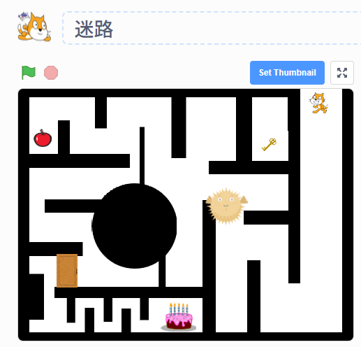 ネコが右上からスタートしてケーキにたどり着いたらゴールという迷路です。