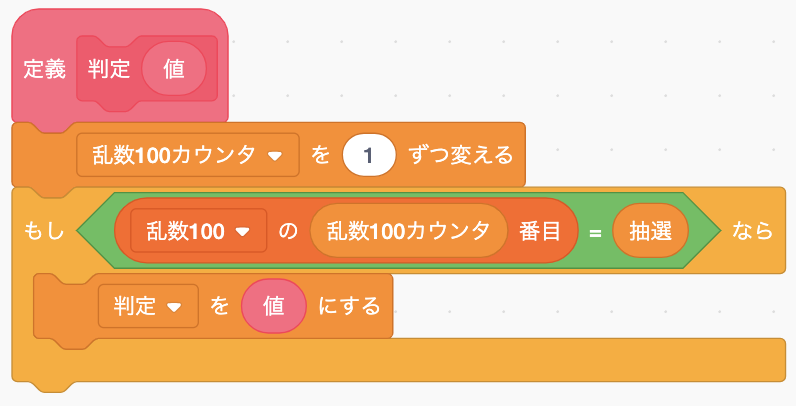 例えば上の画像の場合、抽選の数字は「51」で、リストの4番目に格納されているので、判定は2(当たり)となります。