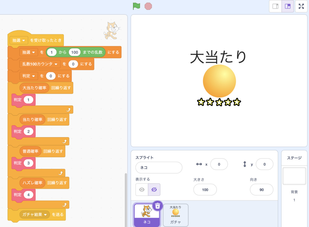 【スクラッチ】レアキャラの出現率を操作できるガチャを作ろう